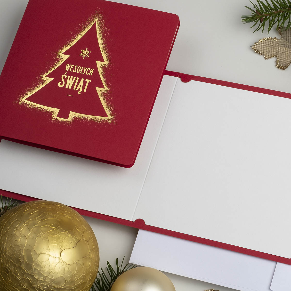 • Nadruk: możliwość zamówienia nadruku cyfrowego życzeń i logo (CMYK 4+0) na wkładce znajdującej się w środku kartki oraz złoconego, tłoczonego lub wycinanego logo na okładce