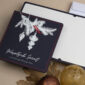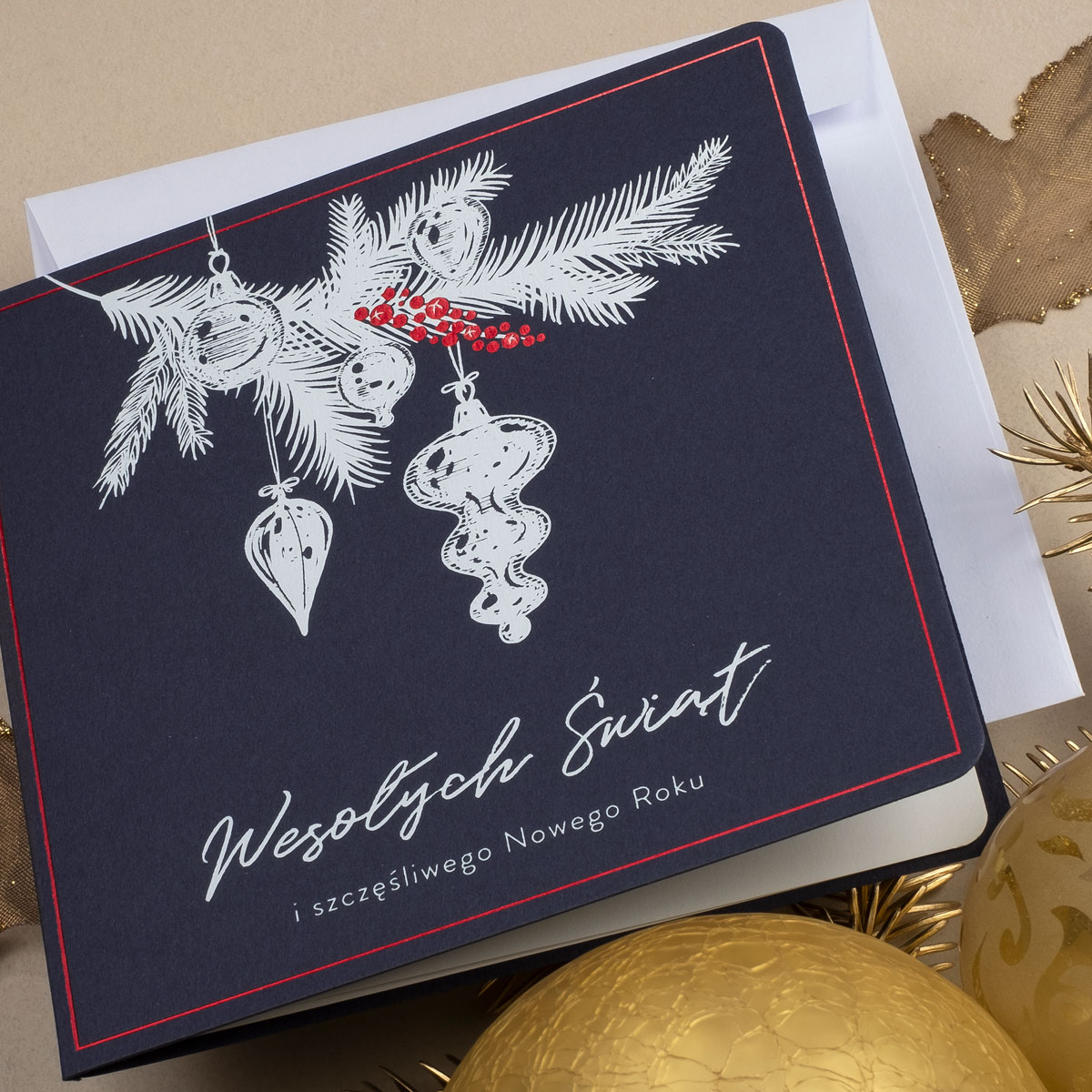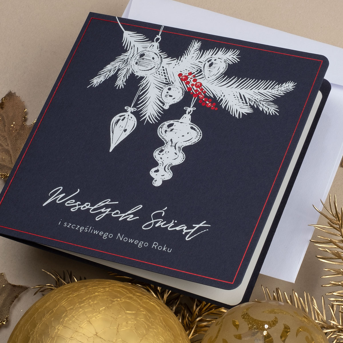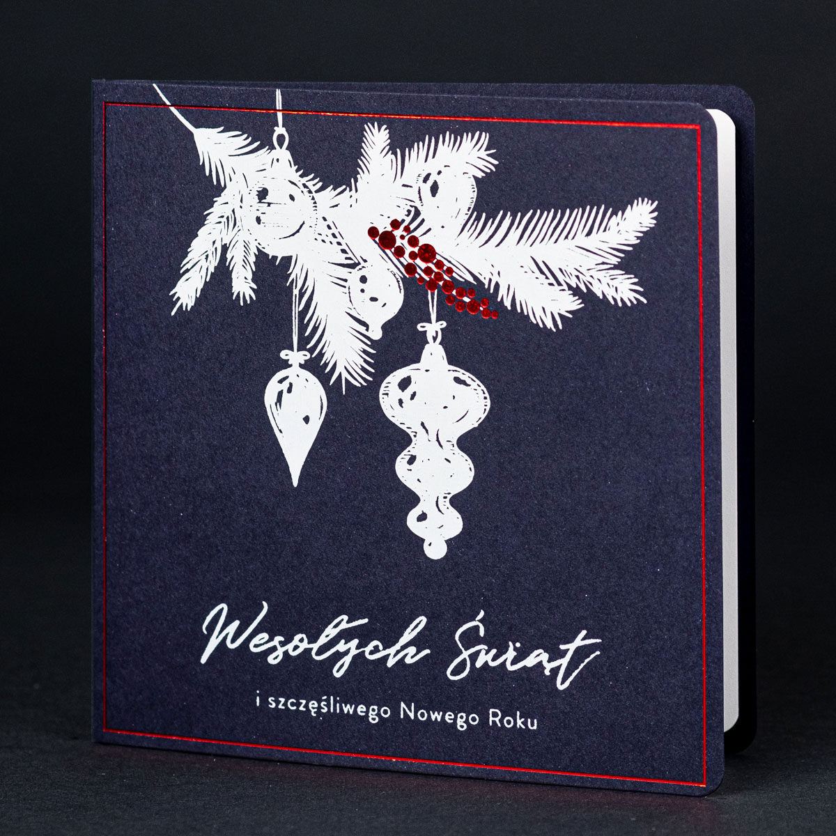 • Nadruk: możliwość zamówienia nadruku cyfrowego życzeń i logo (CMYK 4+0) na wkładce znajdującej się w środku kartki oraz złoconego, tłoczonego lub wycinanego logo na okładce