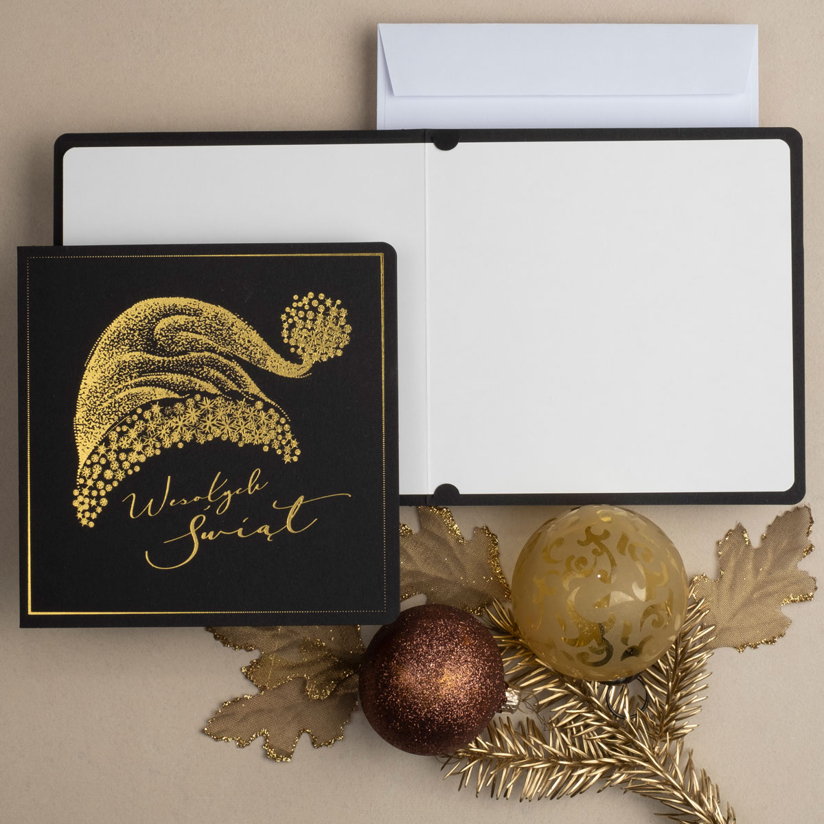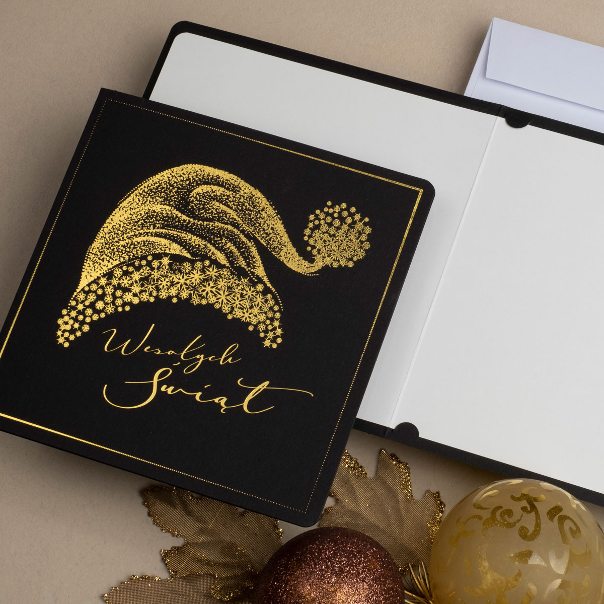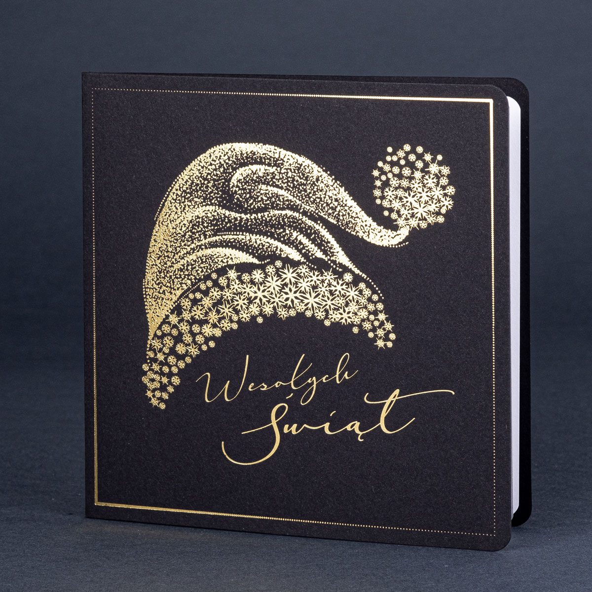• Nadruk: możliwość zamówienia nadruku cyfrowego życzeń i logo (CMYK 4+0) na wkładce znajdującej się w środku kartki oraz złoconego, tłoczonego lub wycinanego logo na okładce