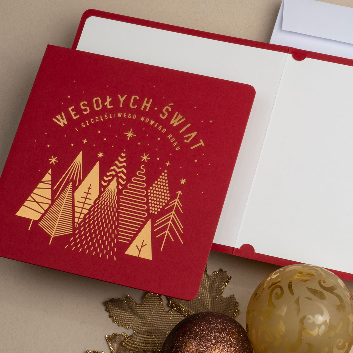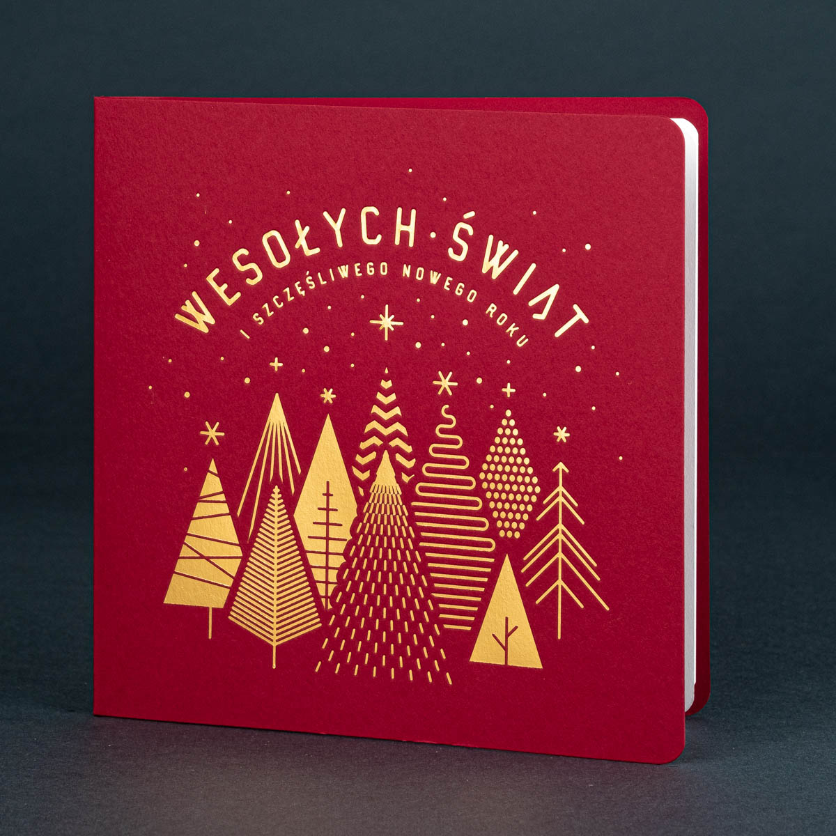 • Nadruk: możliwość zamówienia nadruku cyfrowego życzeń i logo (CMYK 4+0) na wkładce znajdującej się w środku kartki oraz złoconego, tłoczonego lub wycinanego logo na okładce
