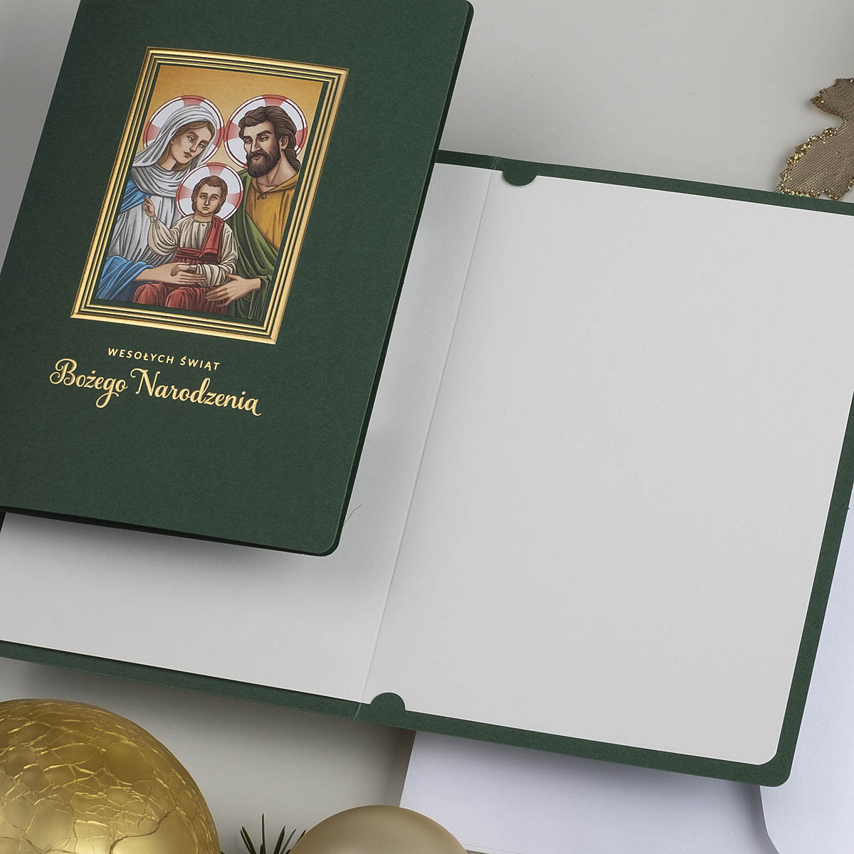 • Nadruk: możliwość zamówienia nadruku cyfrowego życzeń i logo (CMYK 4+0) na wkładce znajdującej się w środku kartki oraz złoconego, tłoczonego lub wycinanego logo na okładce