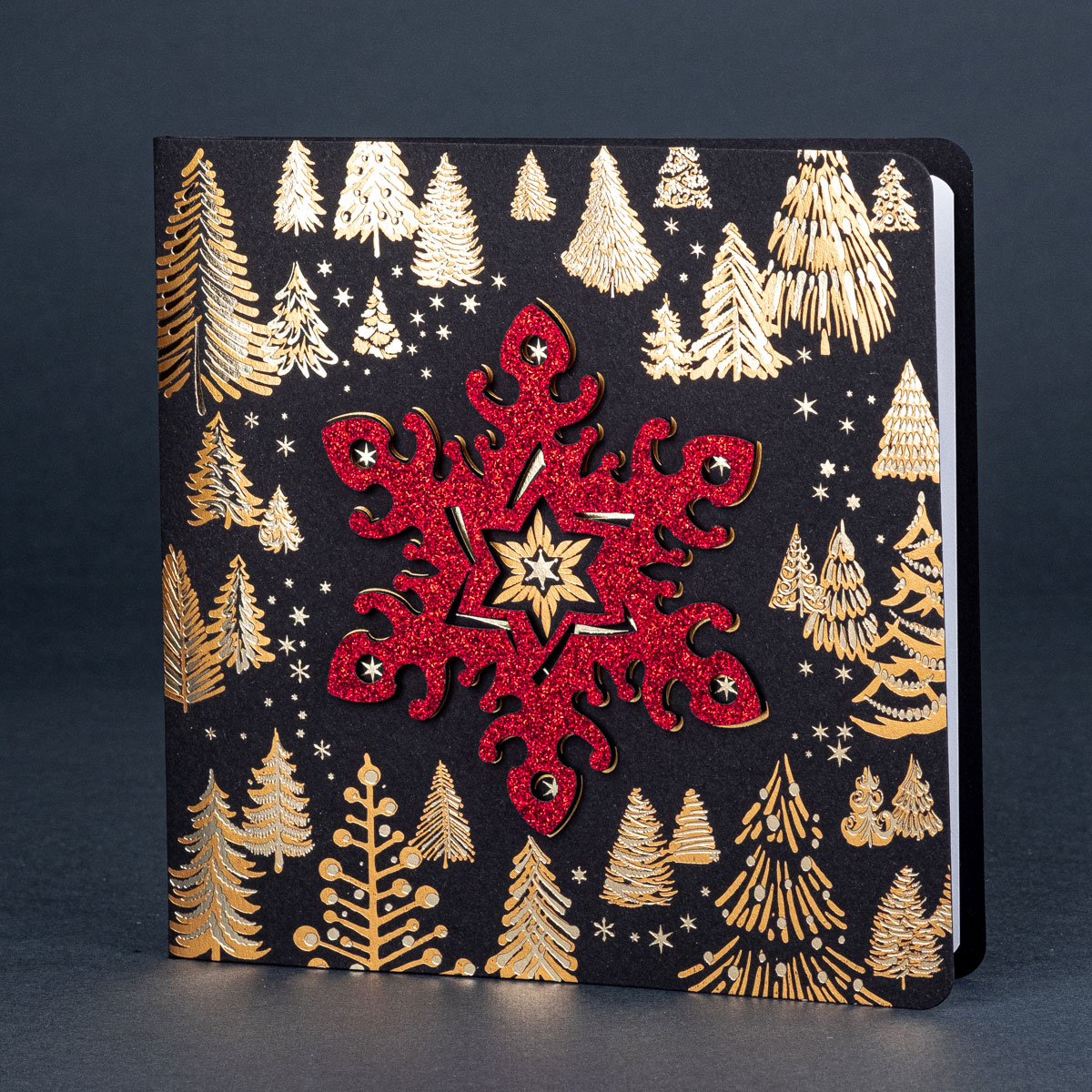 • Papier: ekskluzywny papier czarny barwiony w masie o gramaturze 290g/m² plus złocony karton