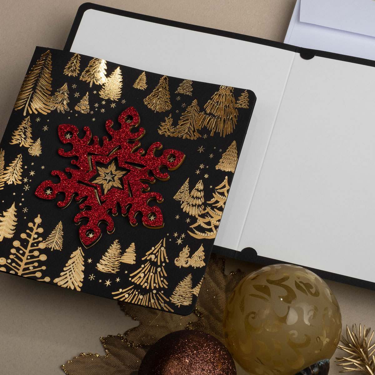 • Wykorzystane techniki: złocenie, brokatowanie, laserowe wycinanie