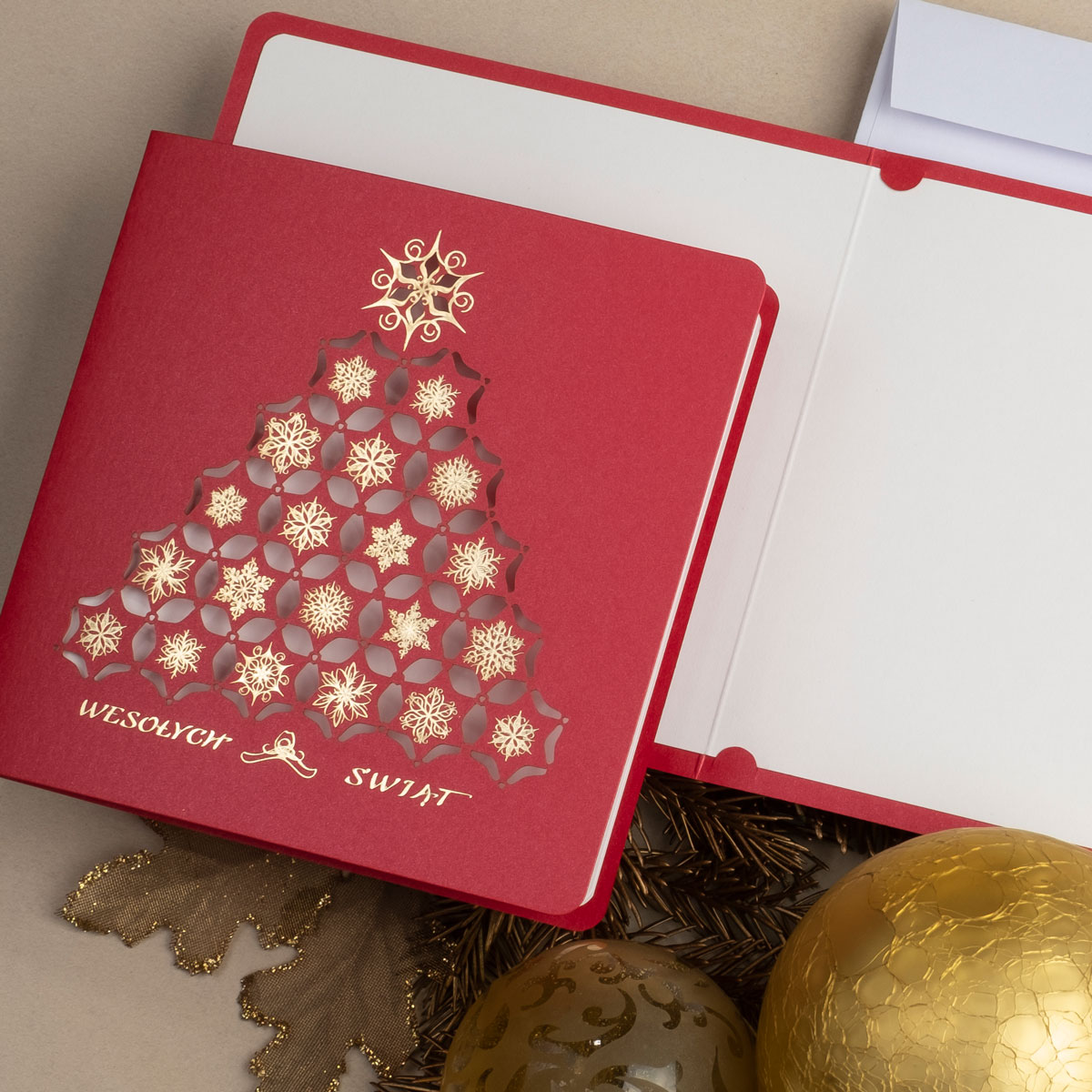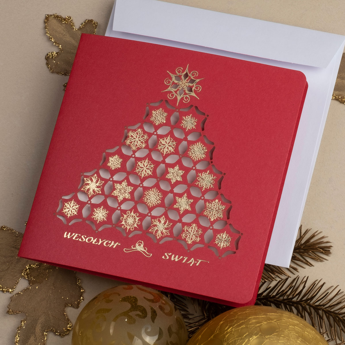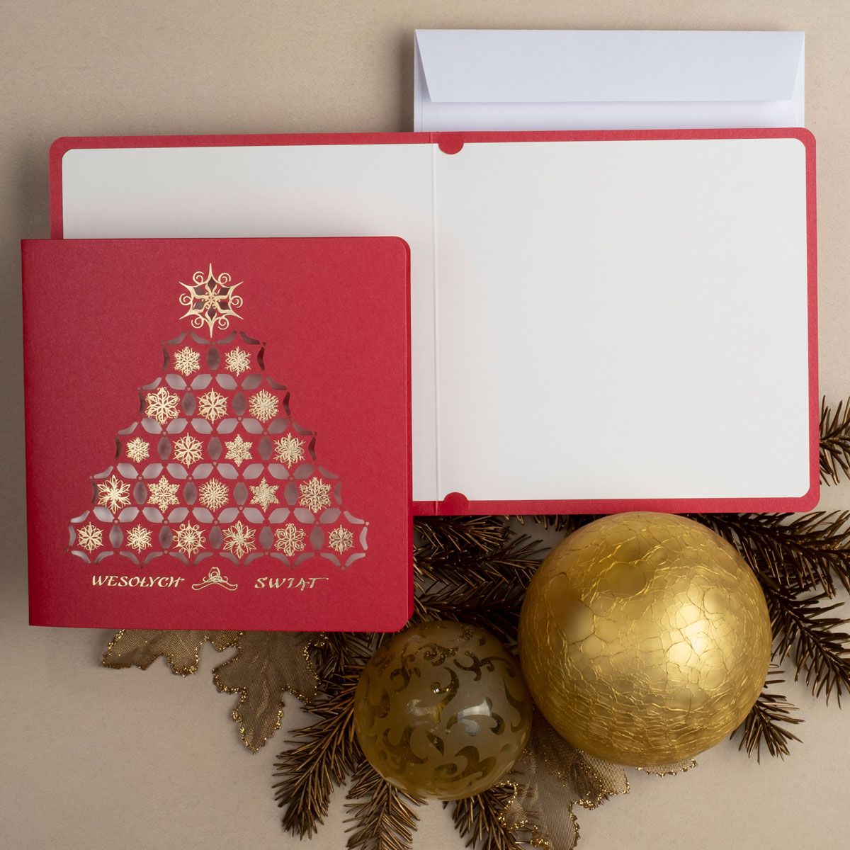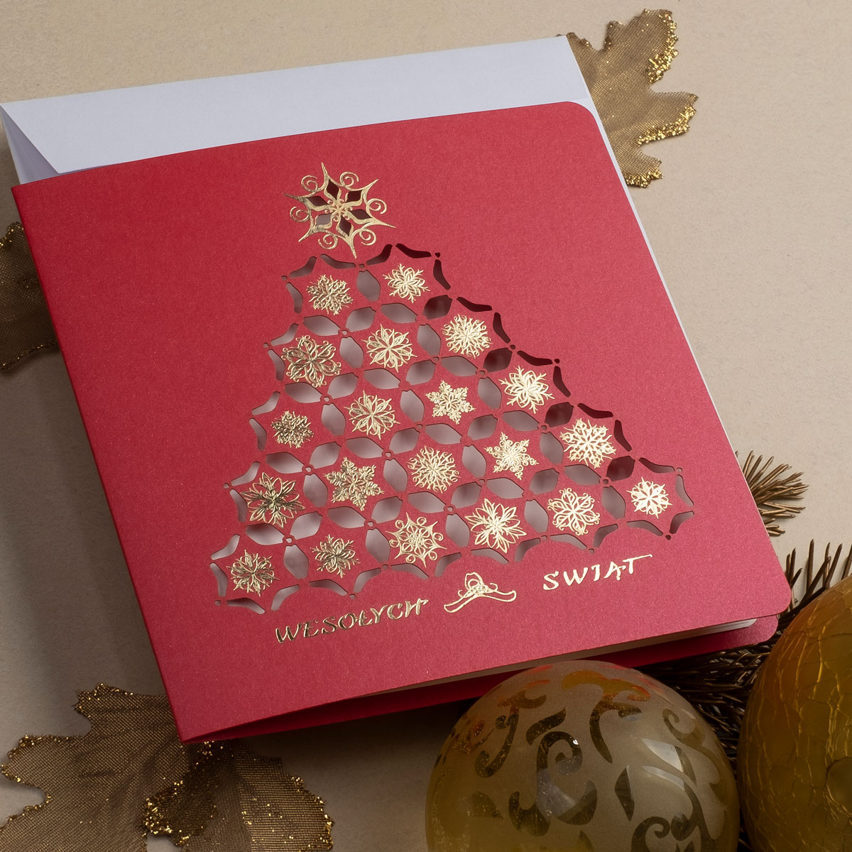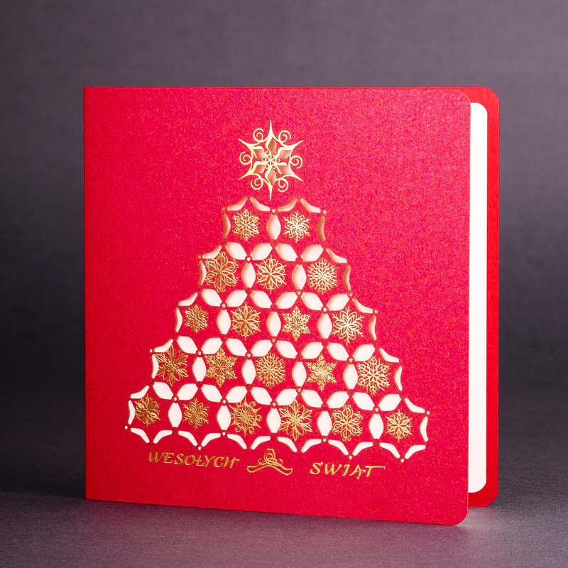 • Papier: Papier: czerwony ozdobny metalizowany 250 g/m² lub czerwony ozdobny matowy 300 g/m². Zdjęcia mogą odbiegać od ostatecznego wyglądu kartki, w zależności od rodzaju użytego papieru