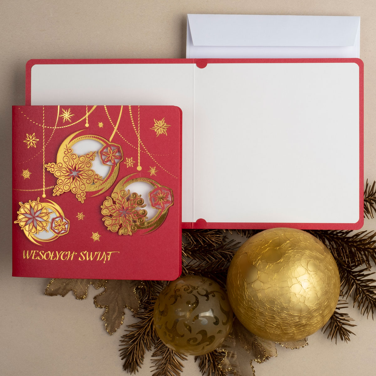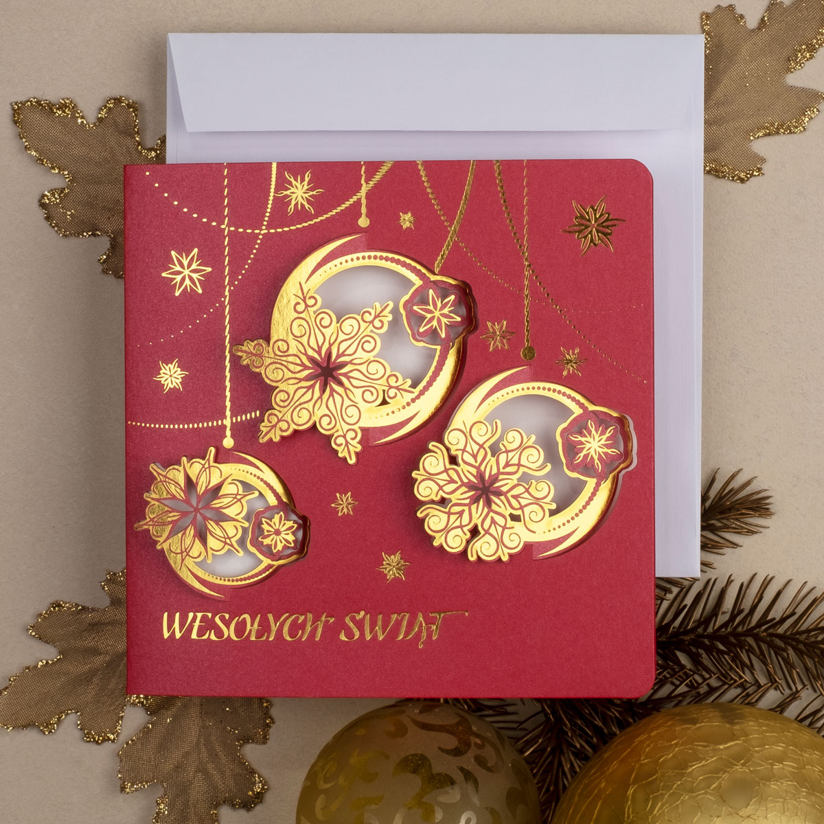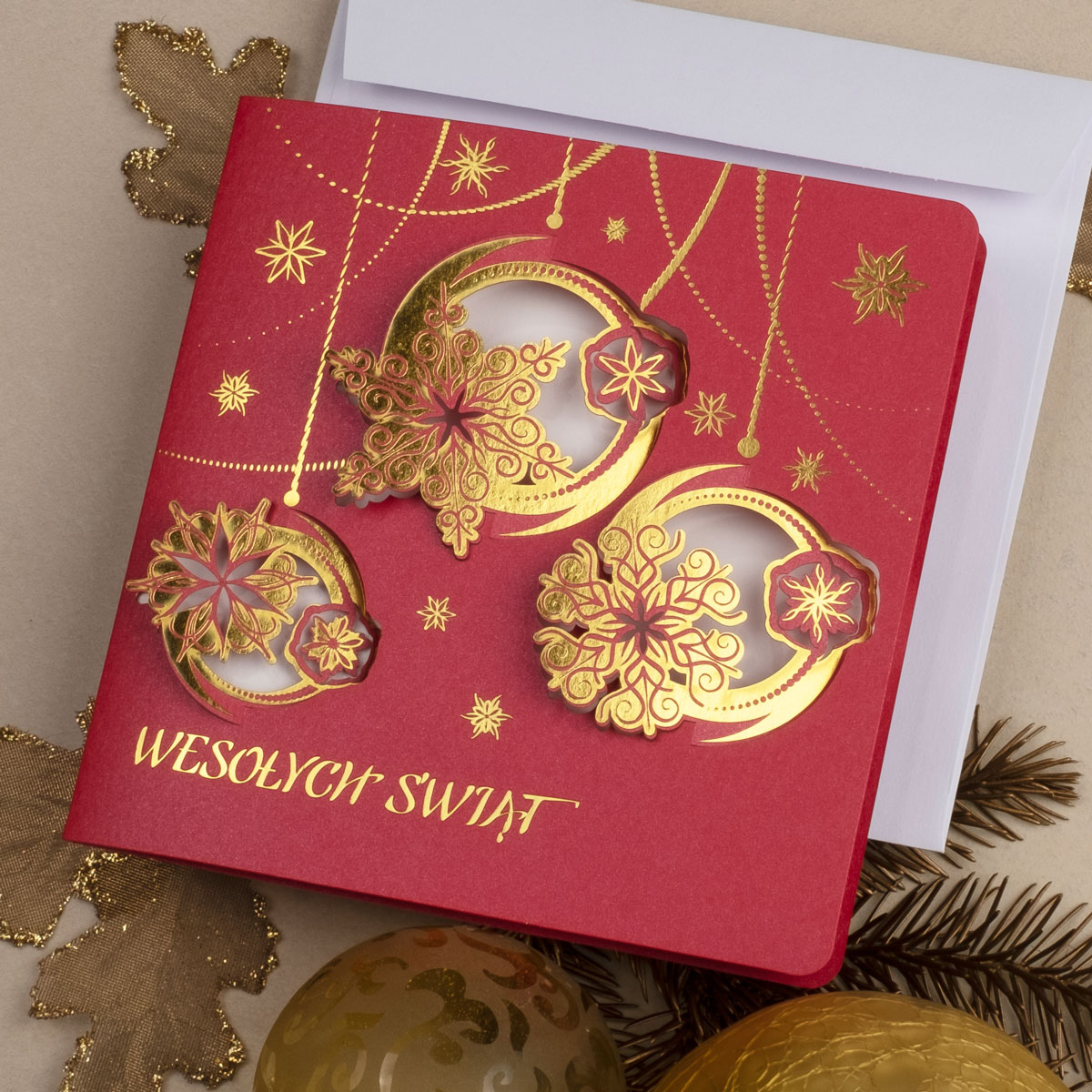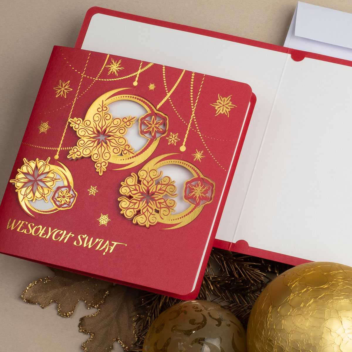 • Papier: Papier: czerwony ozdobny metalizowany 250 g/m² lub czerwony ozdobny matowy 300 g/m². Zdjęcia mogą odbiegać od ostatecznego wyglądu kartki, w zależności od rodzaju użytego papieru