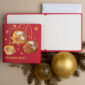 • Nadruk: możliwość zamówienia nadruku cyfrowego życzeń i logo (CMYK 4+0) na wkładce o gramaturze 120 g/m², znajdującej się w środku kartki oraz złoconego, tłoczonego lub wycinanego logo na okładce