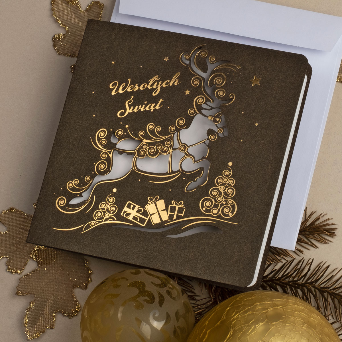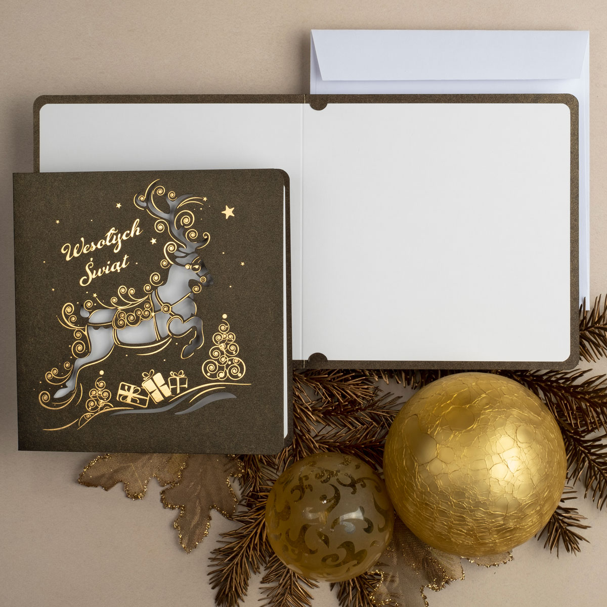 Nadruk: kartki świąteczne CH-1723 wysyłamy w wersji rozłożonej, tak aby mogli Państwo samodzielnie wykonać nadruk na wkładce. Wkładki do zaproszeń można drukować na wszystkich drukarkach laserowych i atramentowych, które mają możliwość ustawienia własnego formatu papieru. Wielkość rozłożonej wkładki, na której mogą Państwo nadrukować logo i życzenia wynosi 140 x 290 mm