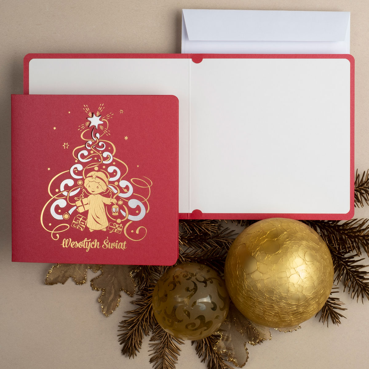 • Papier: granatowy ozdobny metalizowany 230 g/m² lub granatowy ozdobny matowy 300 g/m². Zdjęcia mogą odbiegać od ostatecznego wyglądu kartki, w zależności od rodzaju użytego papieru