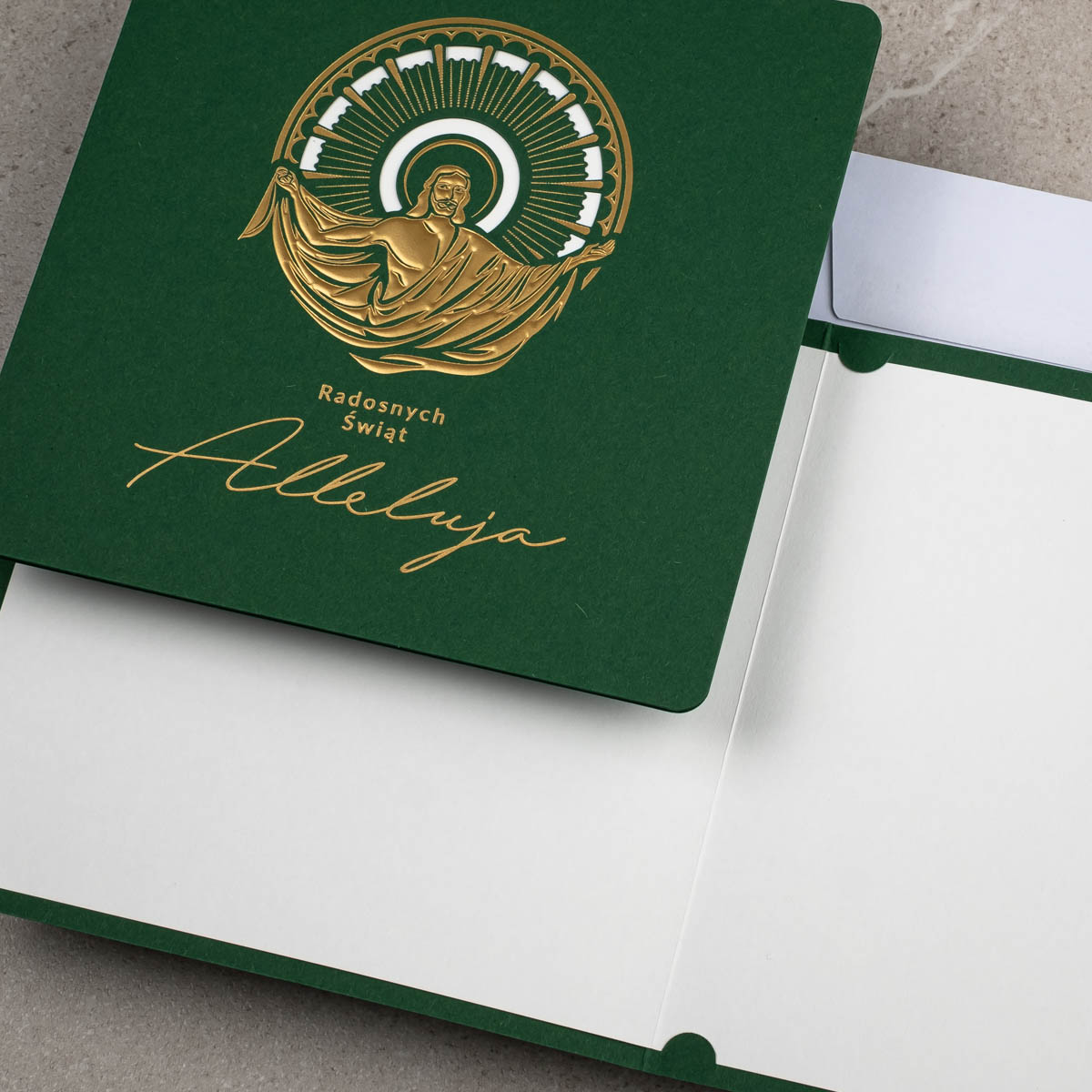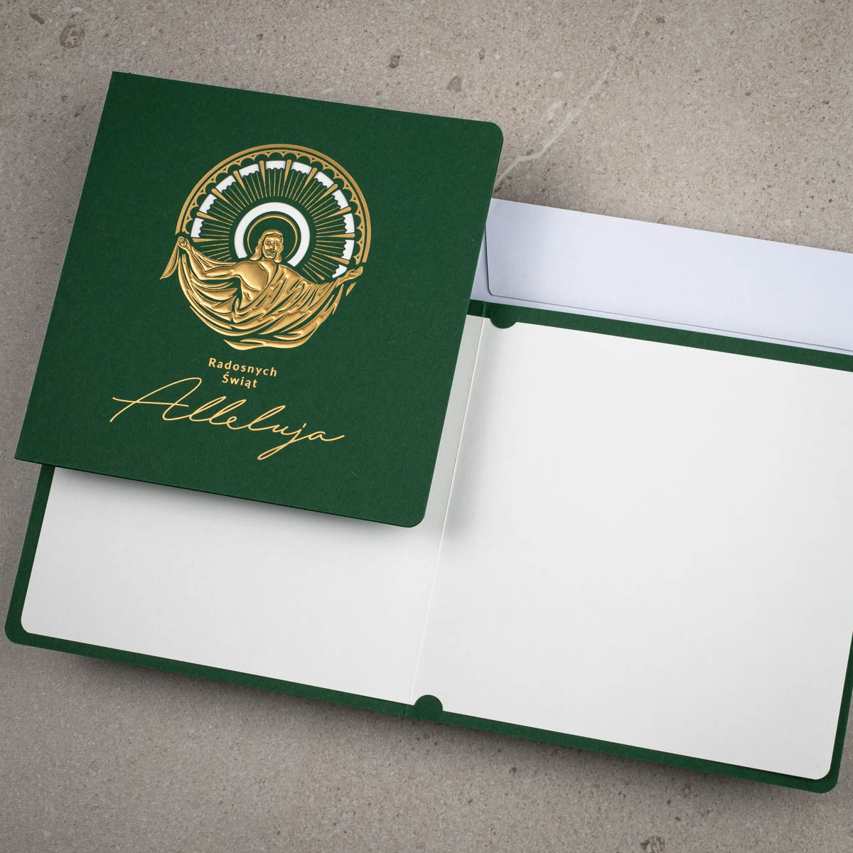 • Koperta: kartka świąteczna EE-002B posiada kopertę w kolorze białym z papieru offsetowego 80 g/m². Koperta standardowa jest w cenie kartki.