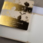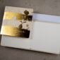 4. Nadruk: możliwość zamówienia nadruku cyfrowego życzeń i logo (CMYK 4+0) na kremowej lub białej wkładce o gramaturze 120 g/m² znajdującej się w środku kartki. Możliwy jest również nadruk złoconego, tłoczonego lub wycinanego logo na okładce