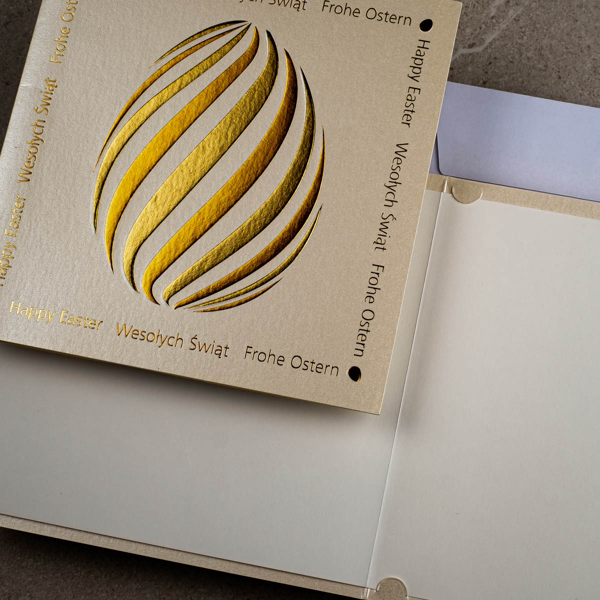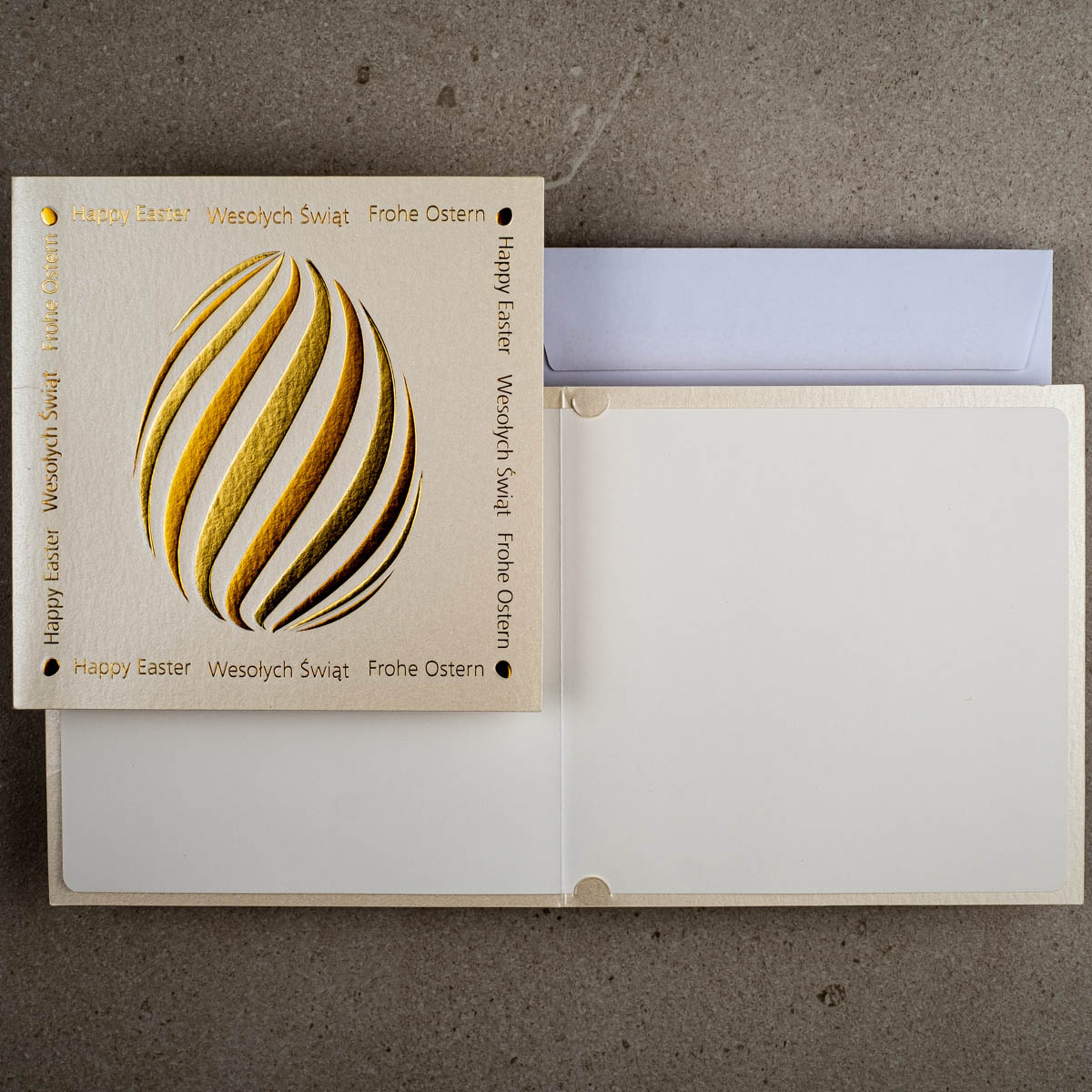 • Koperta: Kartka świąteczna EE-0203 posiada kopertę standardową w kolorze białym z papieru offsetowego 80 g/m². Koperta standardowa jest w cenie kartki.