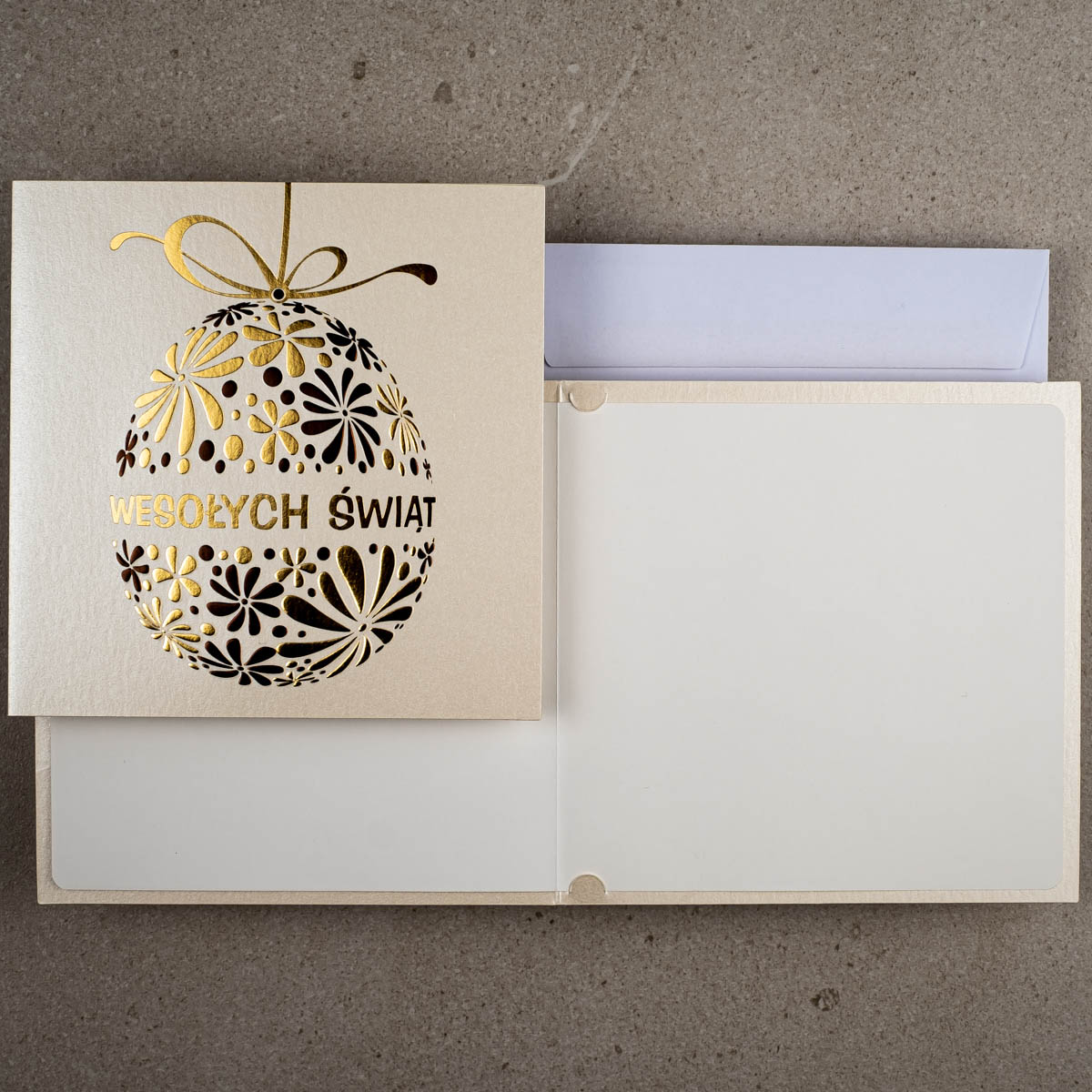 • Koperta: Kartka świąteczna EE-0206 posiada kopertę standardową w kolorze białym z papieru offsetowego 80 g/m². Koperta standardowa jest w cenie kartki.