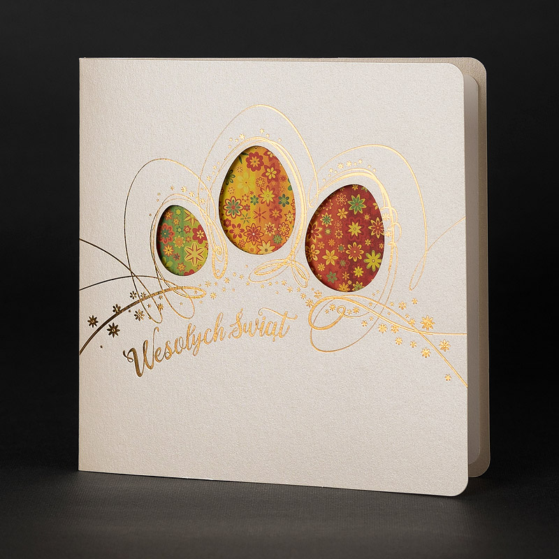 5. Koperta: kartki świąteczne wielkanocne posiadają kopertę w kolorze białym z papieru offsetowego 80 g/m². Koperta standardowa jest w cenie kartki.