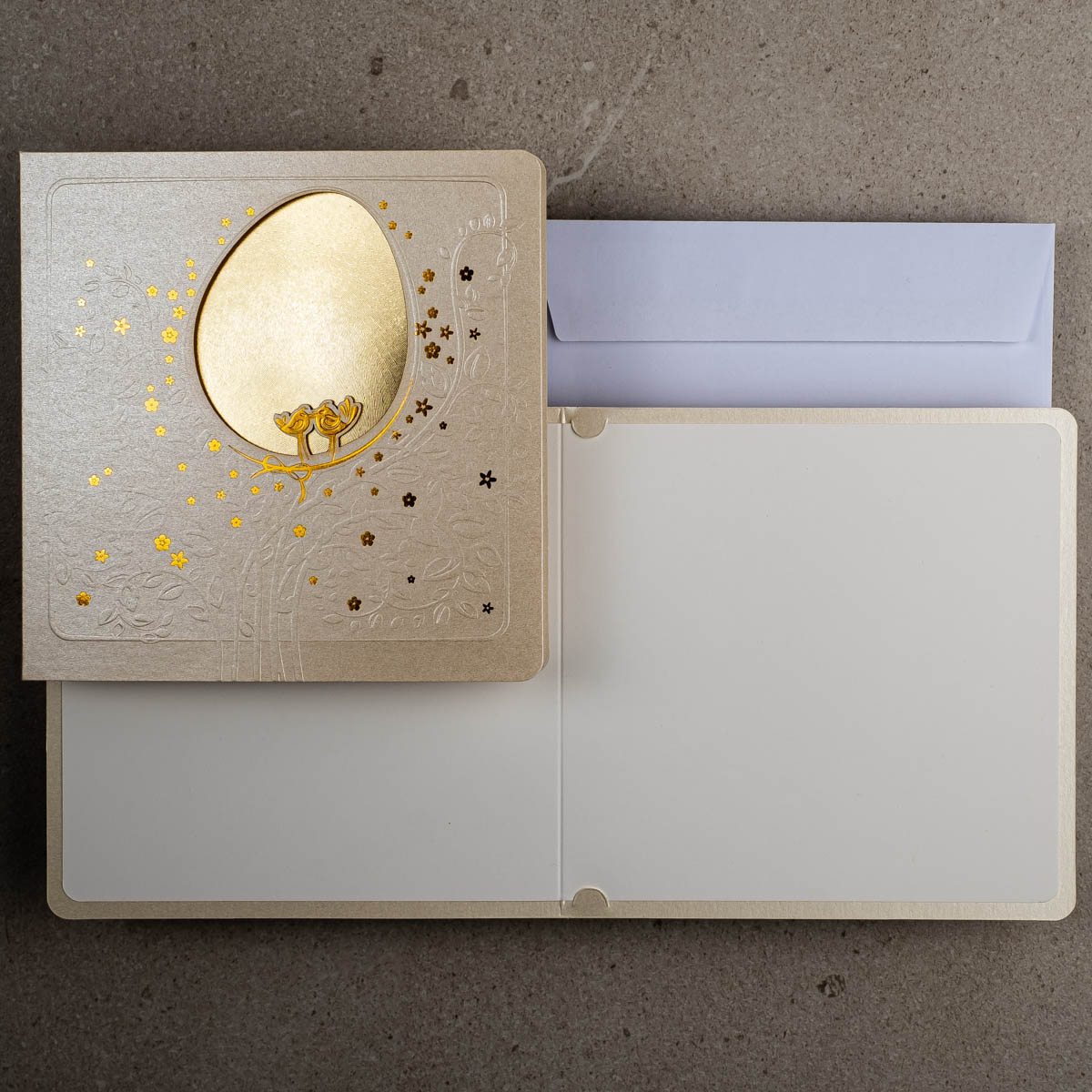 • Koperta: biała koperta z paskiem samoprzylepnym w cenie kartki, możliwość zamówienia koperty ecru z paskiem lub klejonej na mokro w kolorze złotym, srebrnym, eko, granatowym, zielonym, czerwonym