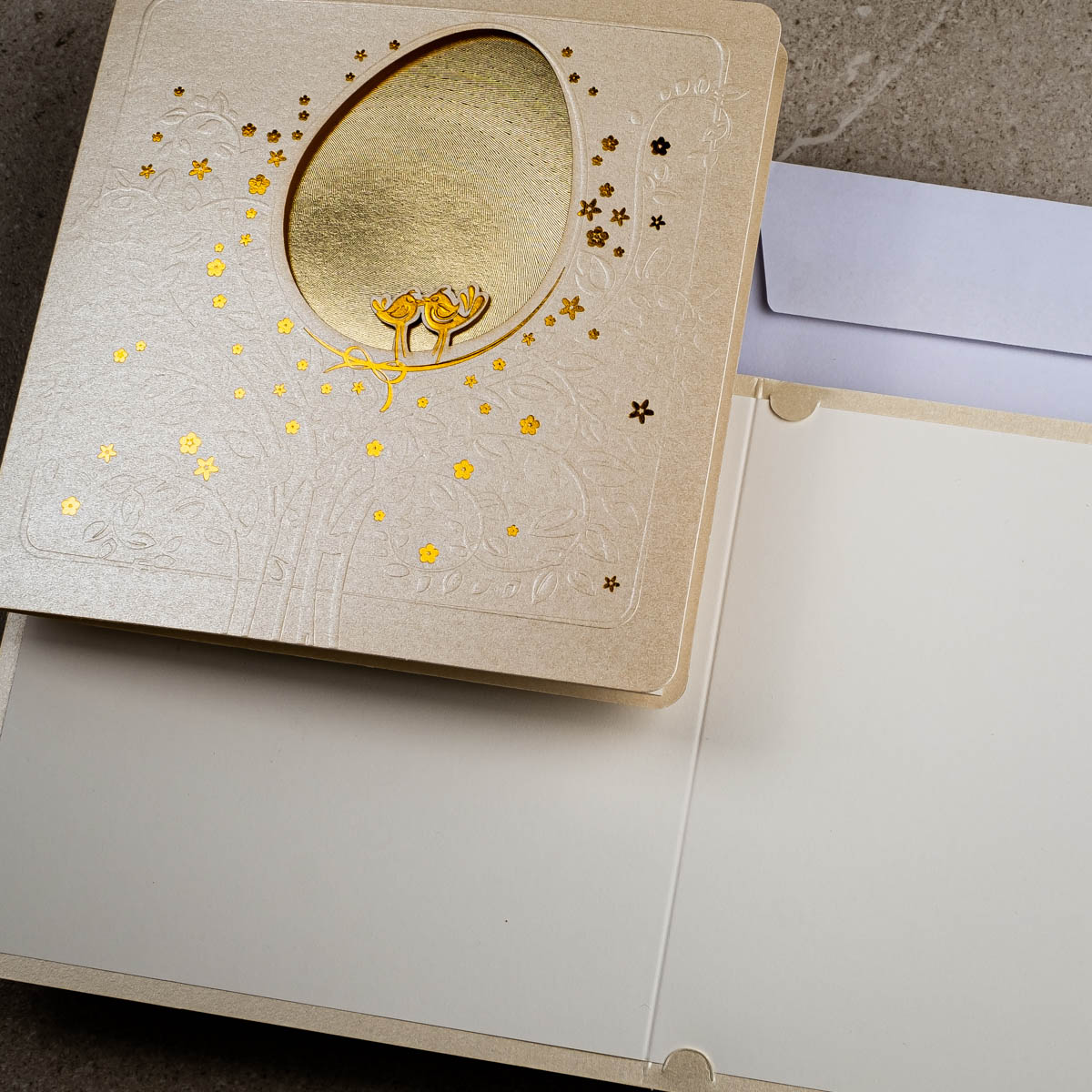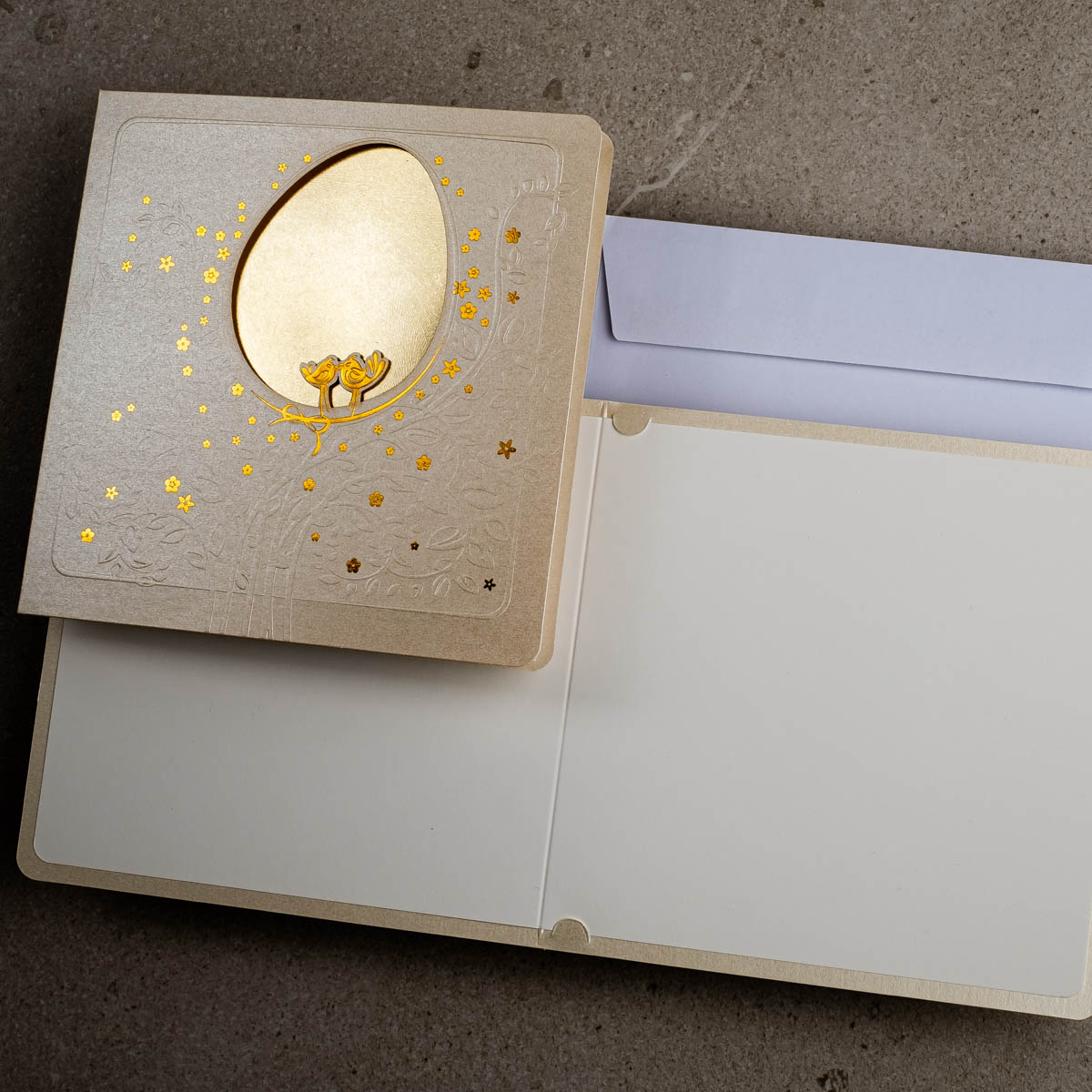 • Koperta: kartki świąteczne wielkanocne posiadają kopertę w kolorze białym z papieru offsetowego 80 g/m². Koperta standardowa jest w cenie kartki.