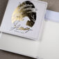 • Nadruk: możliwość zamówienia nadruku cyfrowego życzeń i logo (CMYK 4+0) na białej lub kremowej wkładce o gramaturze 120 g/m² znajdującej się w środku kartki. Możliwy jest również nadruk złoconego, tłoczonego lub wycinanego logo na okładce