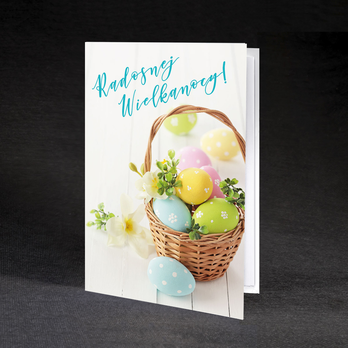 4. Nadruk: możliwość zamówienia nadruku cyfrowego życzeń i logo (CMYK 4+0) na białej wkładce o gramaturze 120 g/m² znajdującej się w środku kartki. Możliwe jest również złocenie lub tłoczenie logo na okładce