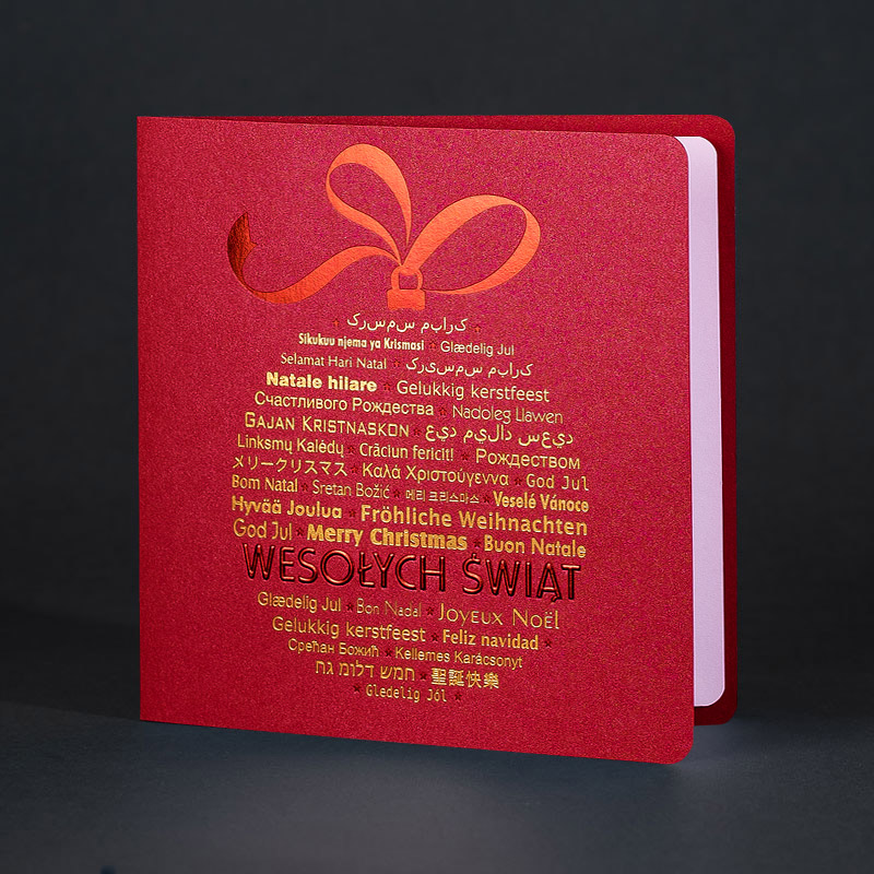 • Papier: Papier: czerwony ozdobny metalizowany 250 g/m² lub czerwony ozdobny matowy 300 g/m². Zdjęcia mogą odbiegać od ostatecznego wyglądu kartki, w zależności od rodzaju użytego papieru