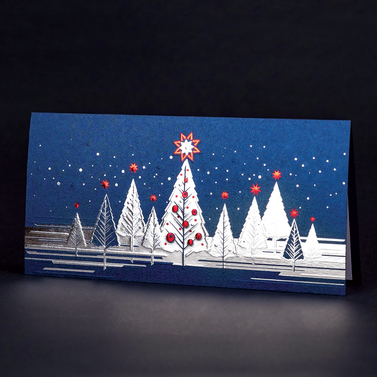 • Nadruk: kartki świąteczne CH-1327 wysyłamy w wersji rozłożonej, tak aby mogli Państwo samodzielnie wykonać nadruk na wkładce. Wkładki do zaproszeń można drukować na wszystkich drukarkach laserowych i atramentowych, które mają możliwość ustawienia własnego formatu papieru. Wielkość rozłożonej wkładki, na której mogą Państwo nadrukować logo i życzenia wynosi 200 x 205 mm