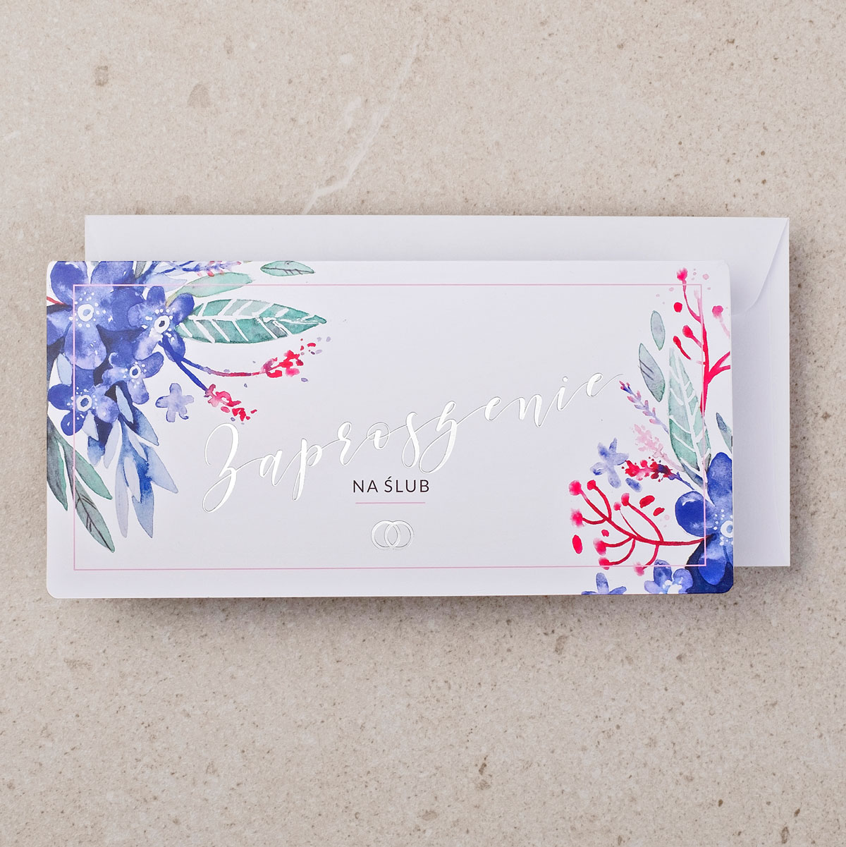 Pakiet składa się z zaproszeń oraz dopasowanej białej koperty.